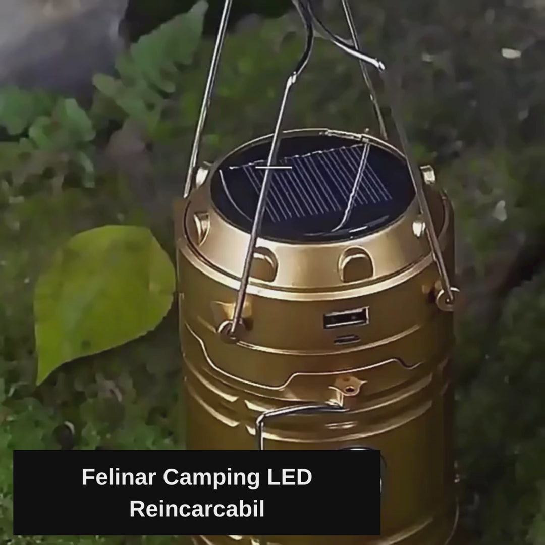 Felinar Camping LED Reincarcabil cu Lanterna, Panou Solar si USB
