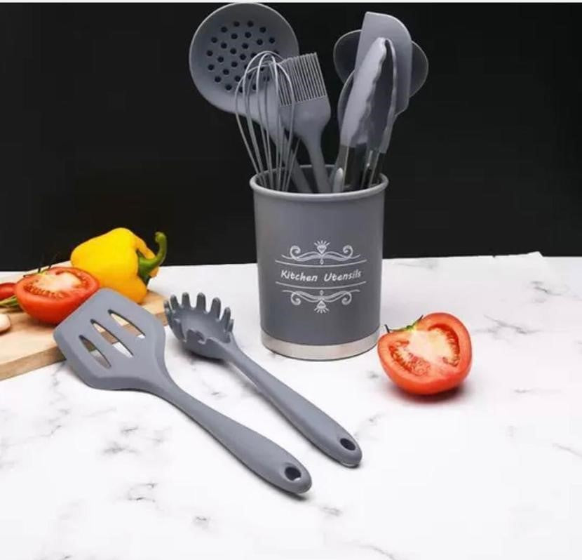 Set 11 ustensile de gatit din silicon gri