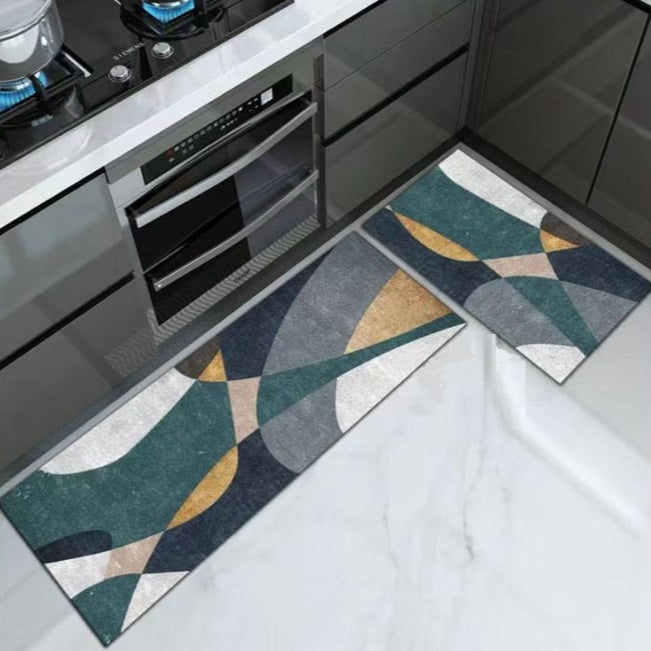 Dimensiunile diferite ale covoarelor din set sunt concepute pentru a se potrivi perfect în fața chiuvetei, aragazului sau a insulei de bucătărie, oferind un confort sporit în timpul activităților zilnice. Aceste covoare sunt ușor de curățat, fie prin aspirare, fie prin spălare manuală, menținându-și aspectul impecabil pe termen lung.